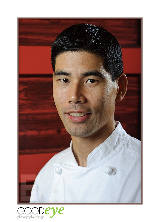 Scott Nishiyama is the new Executive Chef at critically-acclaimed restaurant Chez TJ in Mountain View. This is a gem of a restaurant, and a great place to take that special someone for some fine french dining. The atmosphere is rich and subdued, soft light cast from colorful hand-blown lamps at each table. Scott took 10 minutes out of his busy pre-dinner preparations to get a few quick headshots done for promotional purposes. The rest of the pics from the shoot are here.
