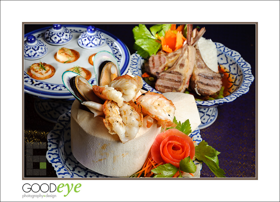 Murphy Street, the one-block heart of downtown Sunnyvale, is getting totally remodeled right now. To the casual passer-by, it looks like a serious construction zone. But the businesses are still open, and there’s some true gems – new and old. One such jewel is Siam Taste, and although there’s nothing extraordinary going on from a windowshopper’s perspective, the food is simply amazing. Cat brought out dish after dish of the tasty Thai food. I yanked the plastic protective tabletop off to reveal the beautiful multicolored / metallic tablecloth beneath, which made for some very interesting color and texture in the photos. Between the table pattern and the dishes, there’s a lot going on (and I tend to prefer “visual simplicity”) but for this place, it just worked. Enjoy my favorite photos in the slideshow below, or click here for all the photos from the shoot.