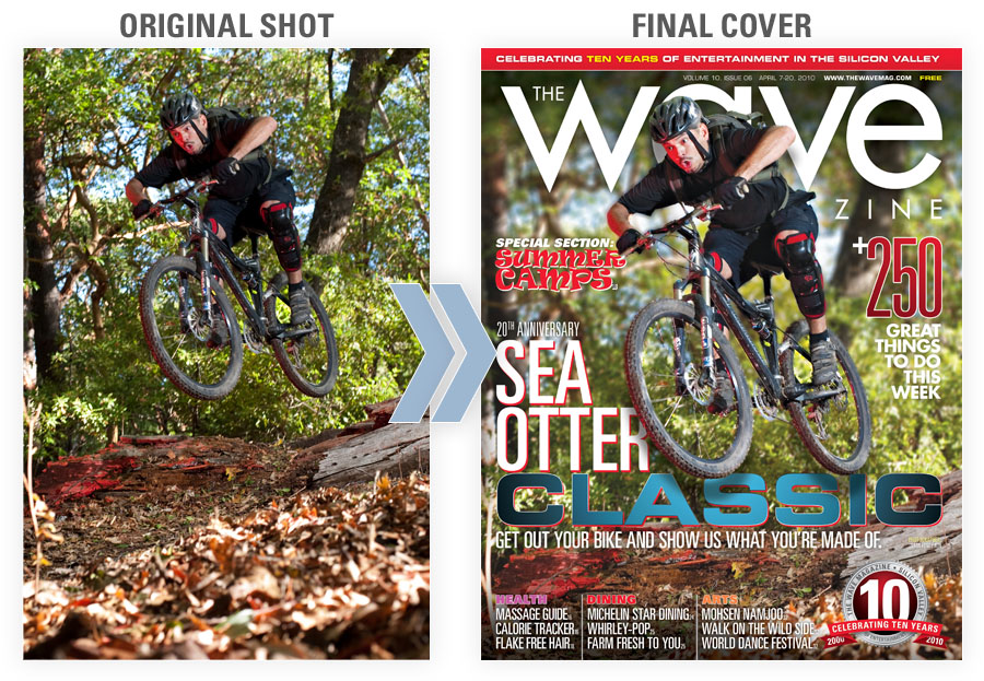 What to do when the Sea Otter Classic people don’t have any good press images to use on the cover of your magazine? You look for other sources, of course! My fellow photographer/buddy Sam Fontejon is an avid sports enthusiast, and actually participates in the Sea Otter Classic every year, so I figured using some of his original artwork to depict the upcoming event was more than relevant. Not only does Sam excel at hurtling down mountains at breakneck speeds with astonished, goofy-faced expressions (amazed you made this jump, Sam?), but he’s a fantastic photographer in his own right, and often accompanies me on important shoots.